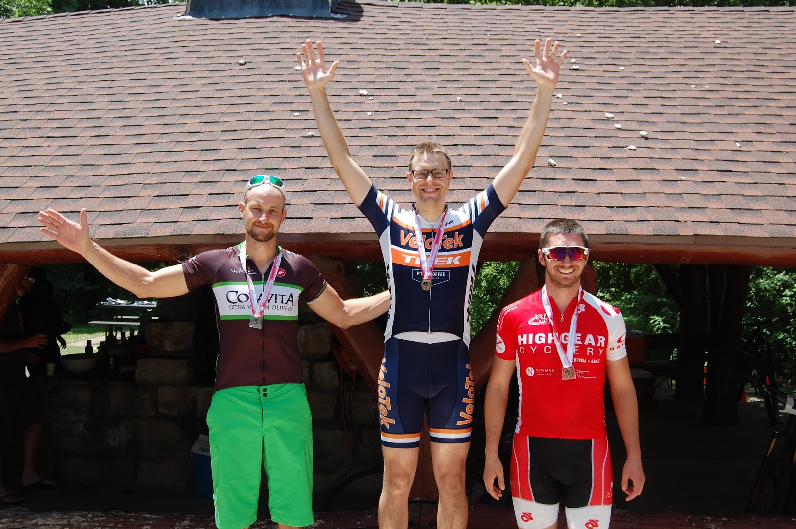 The team was out in force at the Meltdown MTB race which was this year's Kansas State Championships. The heat from earlier in the week subsided a bit so we raced in the lower 90s. I and I'm sure many other teammates took advantage of the mid-course tent where there were volunteers happily spraying racers before the long gravel climb.